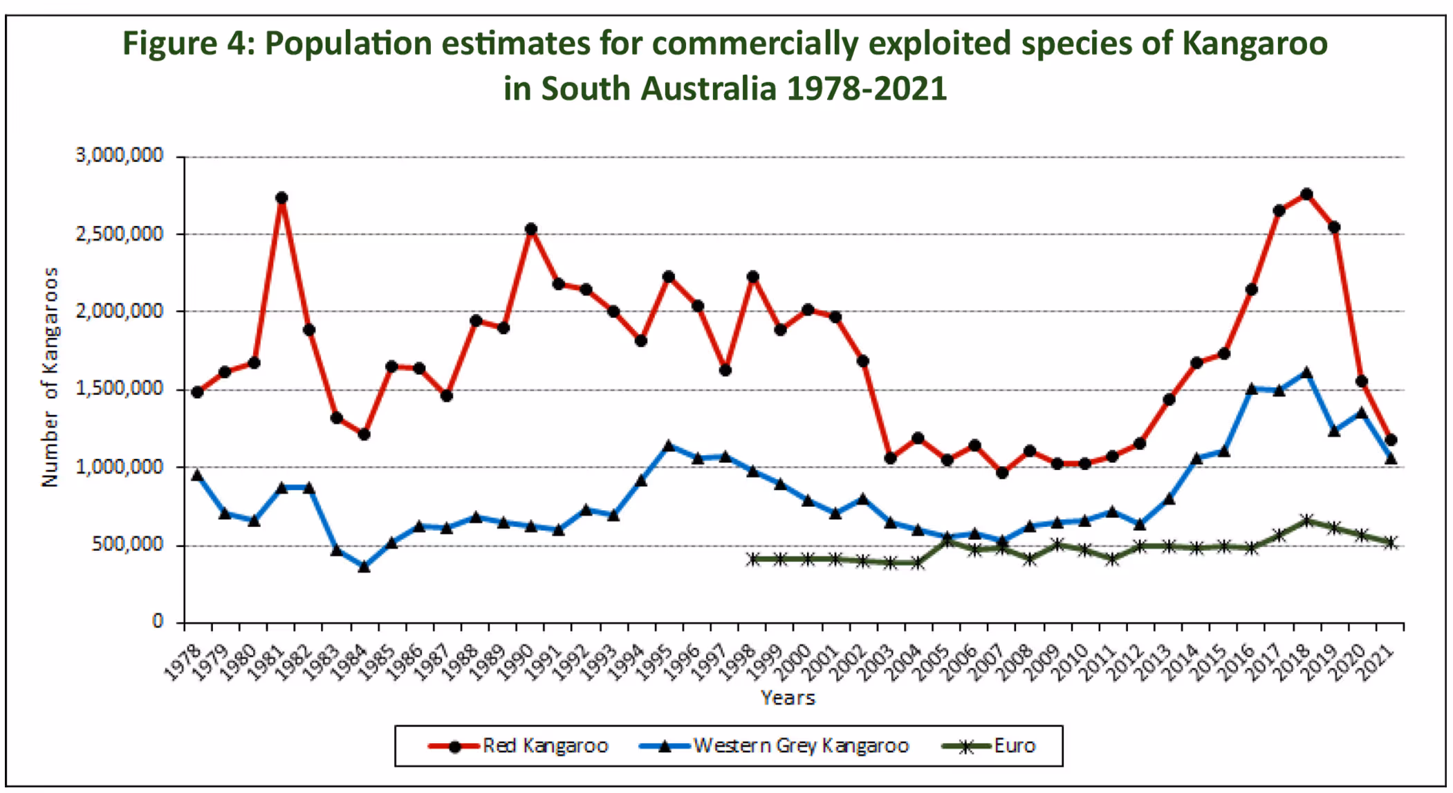 Kangaroo populations are surveyed each year, and the science to estimate kangaroo population numbers has been extensively peer-reviewed. Currently, it is estimated there are 5 million to 6 million Kangaroos in South Australia, with only approximately 100,000 harvested per year. The additional measures are estimated to remove between 50,000 to 100,000 additional Kangaroos”. Hon Claire Scriven MLC