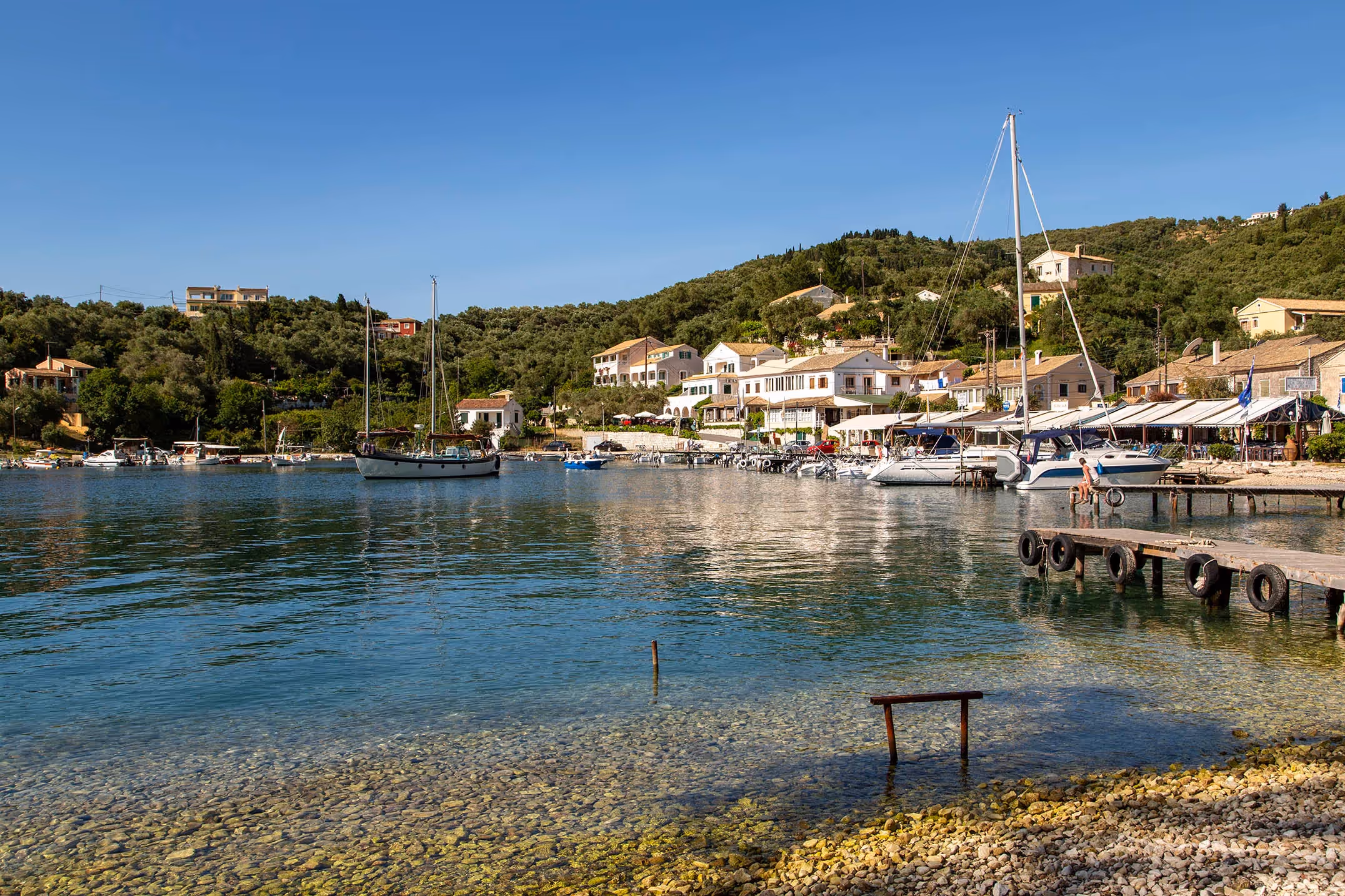 Almost it seemed in touching distant, the velvet hills of Albania. It was not so long ago that our friends would sit on their terrace in Northern Corfu and listen to the sound of machine gun fire echoing in the Albanian Hills, tragedies unfolding, so close, and yet so far from our new found paradise. We head north and away from Corfu Town with its twin fortresses to the small village of Perithia.