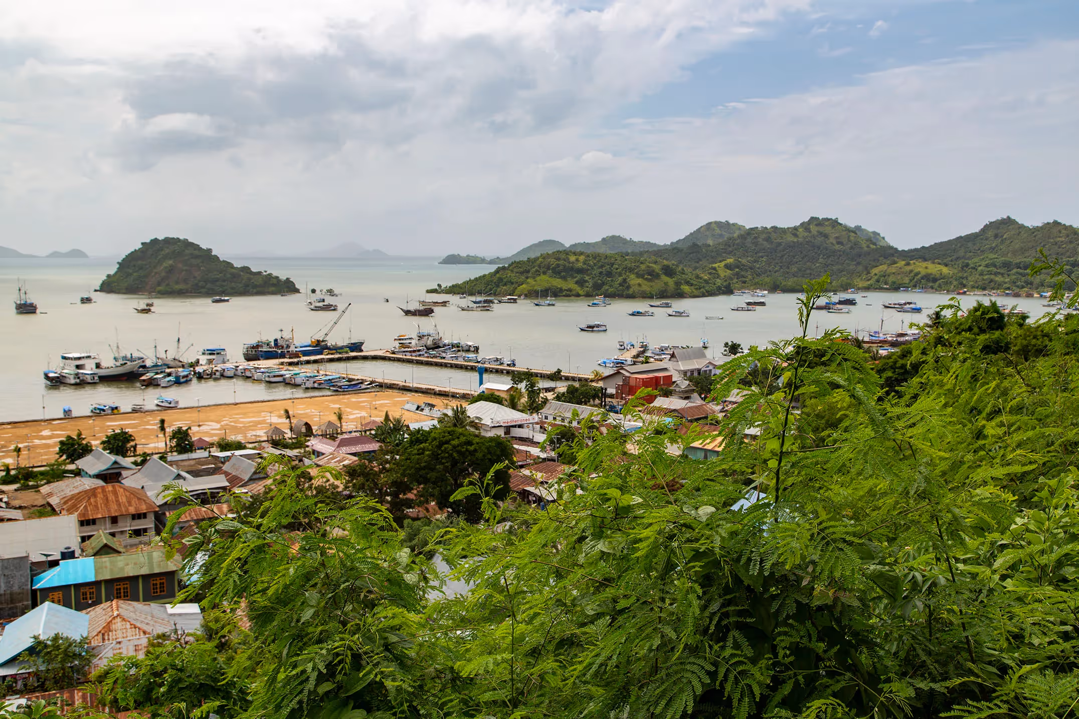 Labuan Bajo with its small shops and nestling harbour, its street activity. A small bay of boats nestling in shelter here, traditional fishing boats and elegant looking sailing boats all together at anchor in the peaceful water. It is a beautiful place.
