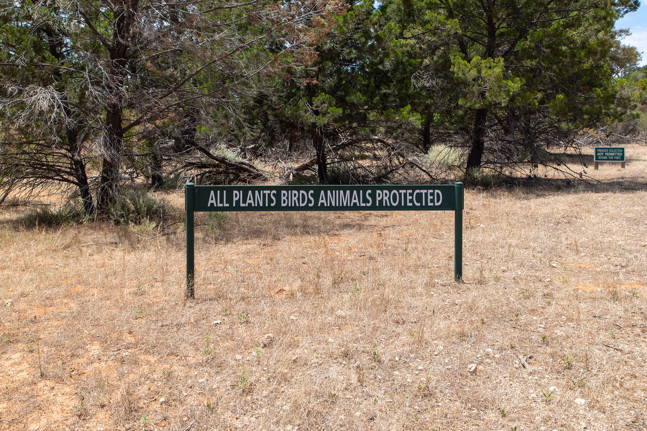 This is one of the death pits containing the carcasses of thousands of Kangaroos killed in the 1990-1991 mass killing of Kangaroos. The park’s management have dug a death pit at one of the most obvious areas of natural regeneration and natural dune stabilisation in the park. Red Gum, Black Box and Callitris Hop Bush were all actively regenerating at and near this site prior to the killings. This destroyed the natural regeneration that was occurring over the site. The pit caused soil damage from which this area will take many years to recover (the 1984 Kangaroo disposal pits are still compacted from the earthmoving equipment as no effort has been made to restore this area).