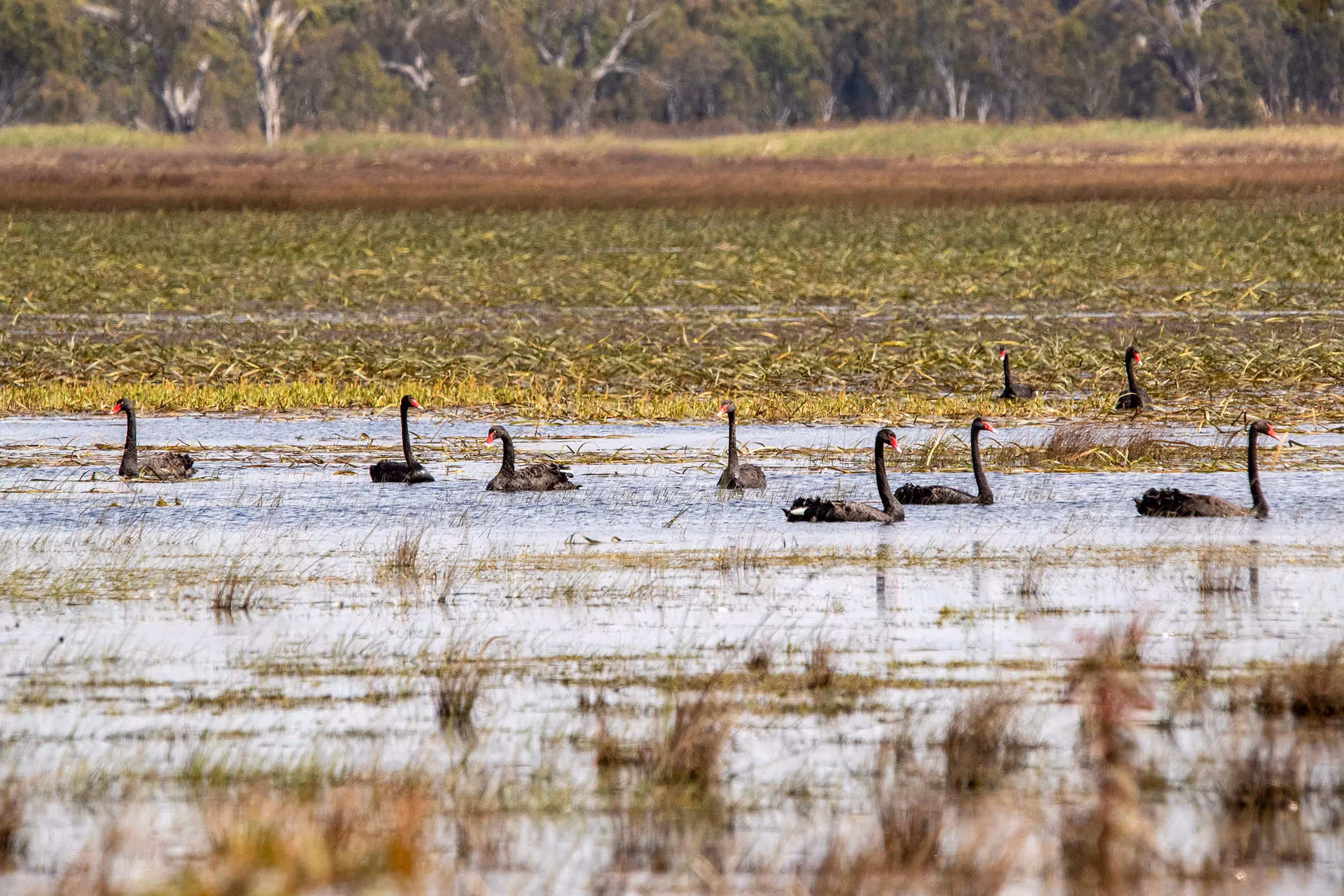 Bryans Swamp is a wetland in Western Victoria set amidst intensely cleared agricultural land at the edge of the Grampians Mountains complex and Gariwerd National Park. Following the drainage works and subsequent grazing of the last century, so typical of what was done to wetland systems, some attempts at restoration are underway. On our last few visits, water levels, given the general wet conditions and some recent reversal of drainage works, including the construction of a sandbag weir, were higher.
