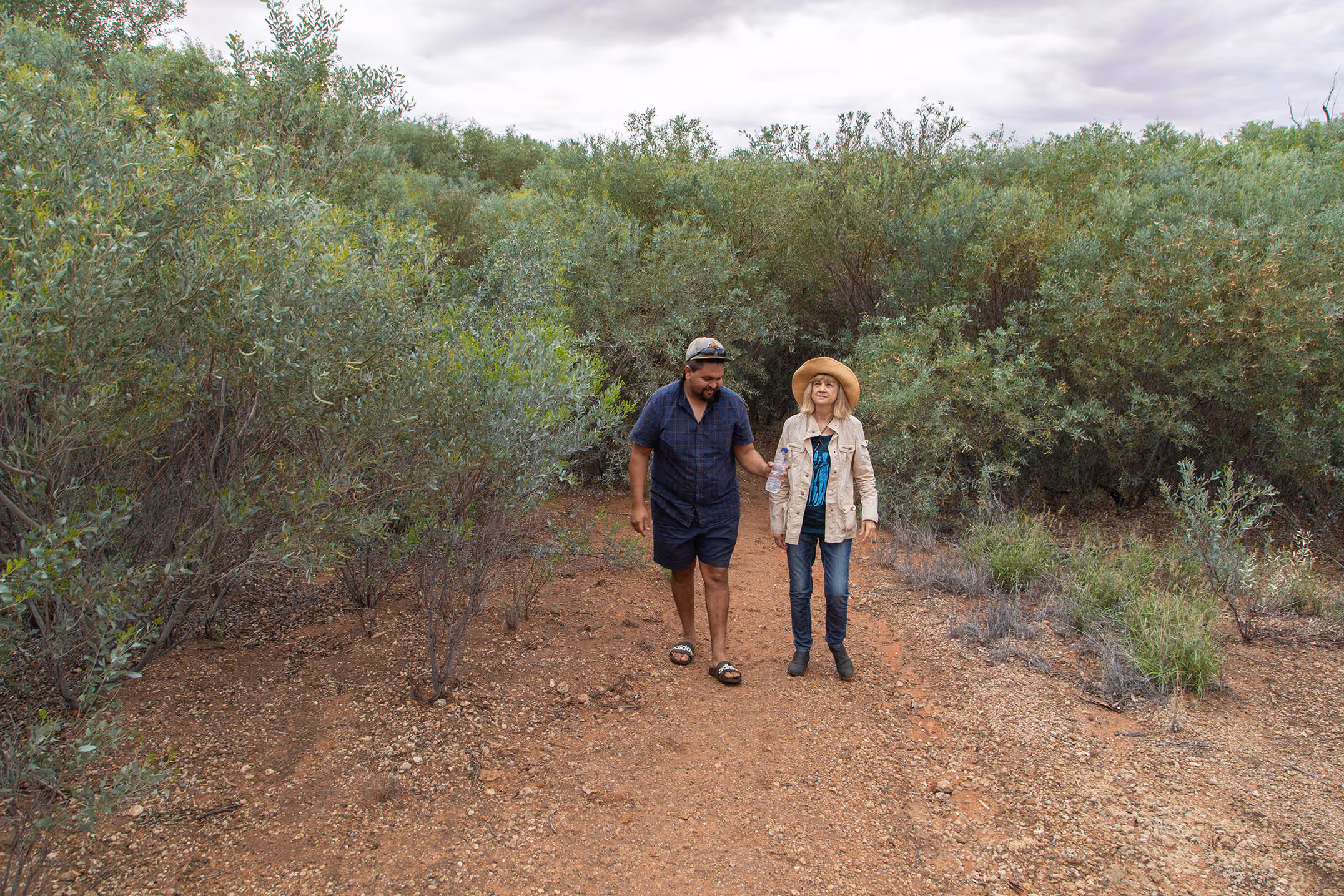 The surrounding vegetation is very beautiful and includes the River Red Gum Eucalyptus camaldulensis, ancient, large, majestic and twisting in the dryness. There is an occasional Red Cabbage Palm Livistona mariae, also tall and distinguished.