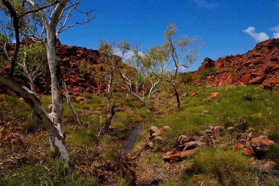 “Before sea levels rose in response to global warming at the end of the last ice age, the hills of what is now the Dampier Archipelago, were uplands 150 kilometers from the sea. Australia’s ‘archaic faces’ lie in small clusters in a very few remote valleys hidden in widely spaced massifs; the Burrup, the Durba Hills, the Calvert Range and the Cleland Hills, focal places of ceremony and symbolism, sparsely scattered across 1,700 hundred arid kilometers”. Dr Sylvia Hallam